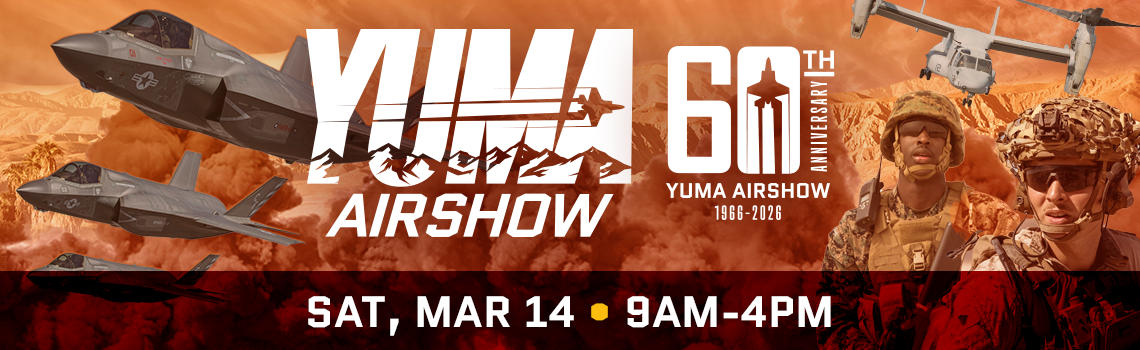 The Yuma Airshow takes flight at Marine Corps Air Station Yuma on Saturday, March 14, 2026. The show will showcase military performances by USMC and USAF. Also, patrons can get up close and personal with some of our air crafts in the static display area.