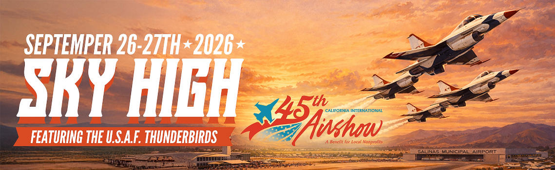 The Board of Directors of the California International Airshow are excited to announce out 45th annual anniversary, taking place September 26–27, 2026 at Salinas Airport, featuring the US Air Force Thunderbirds.