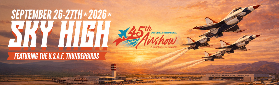 The Board of Directors of the California International Airshow are excited to announce out 45th annual anniversary, taking place September 26–27, 2026 at Salinas Airport, featuring the US Air Force Thunderbirds.